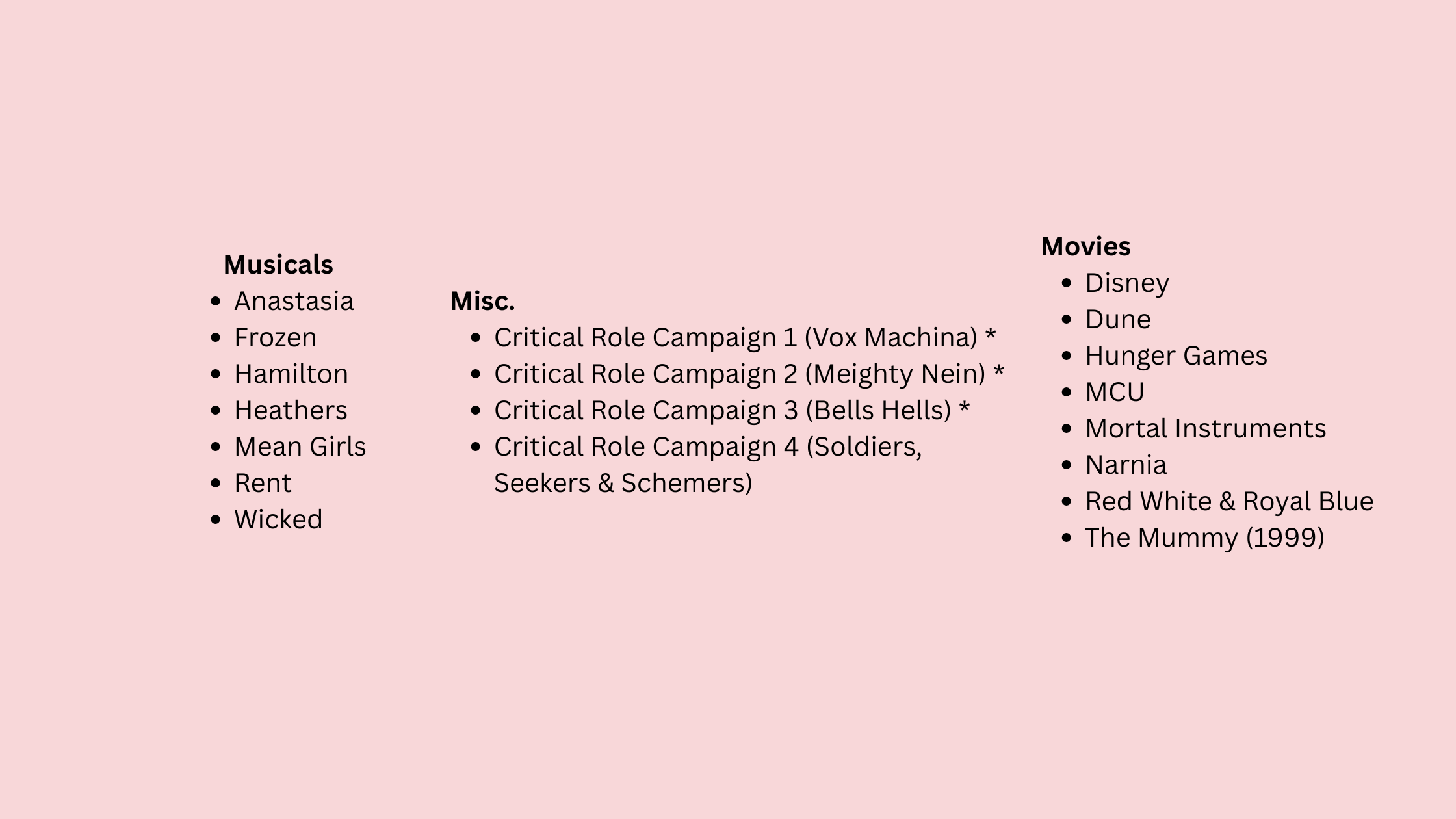 An ‘*’ means we have not finished this media in it's entirty, please Email us!